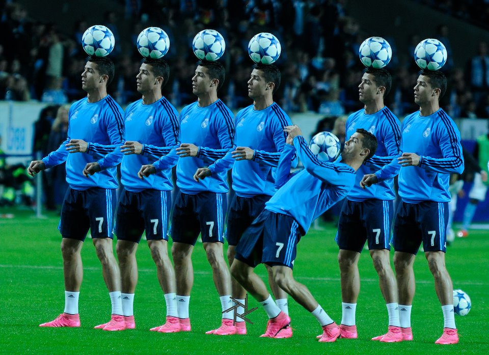 Cristiano Ronaldo taking his freestyle warm up to another level prior a Champions League match with Real Madrid.